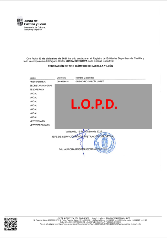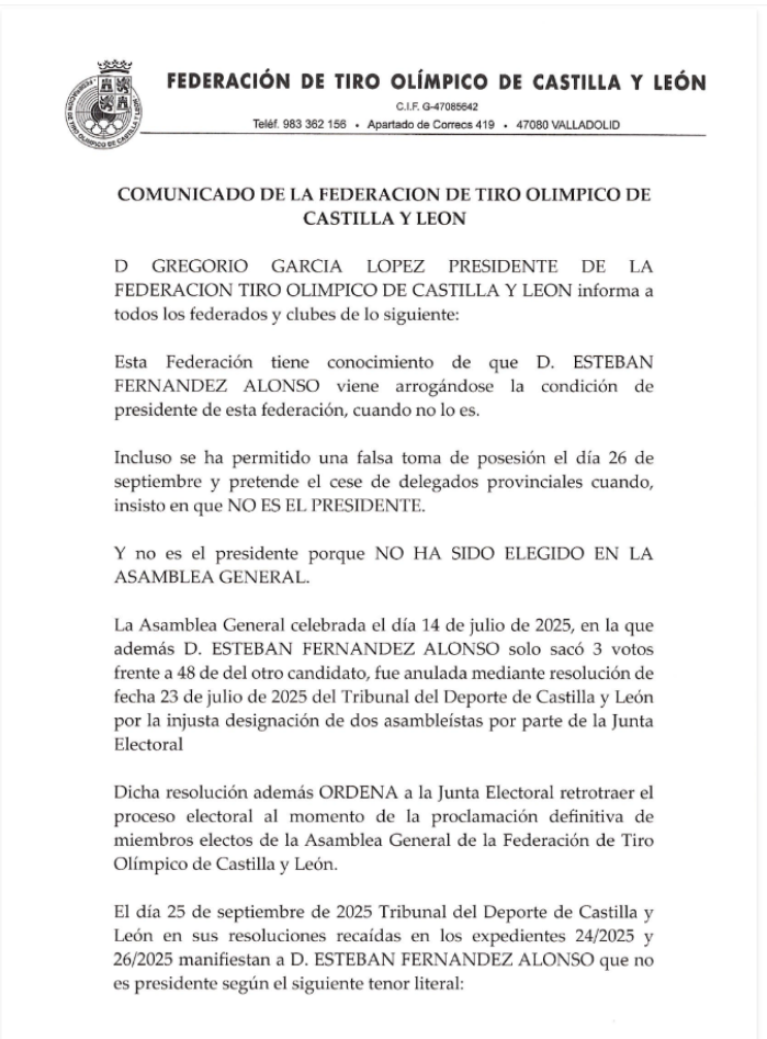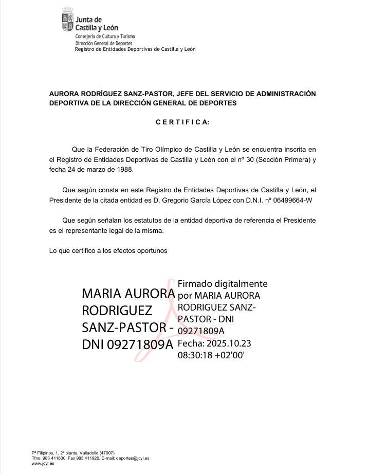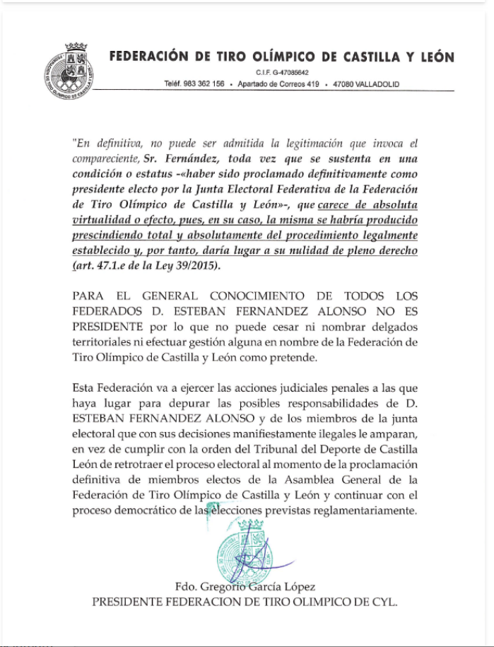 Sr. Presidente de la Mesa Electoral de la Federación de Tiro Olímpico de Castilla y León.