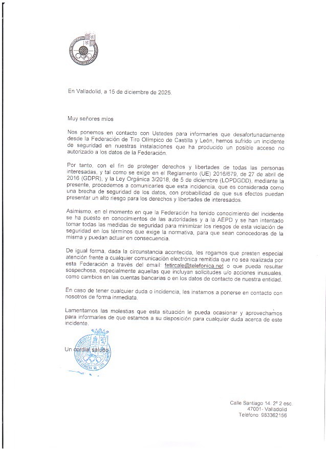 Esta medida se adopta con el fin de actualizar y verificar nuestra base de datos, garantizando que la información de todos los federados sea correcta y esté debidamente actualizada, en cumplimiento de la normativa vigente.